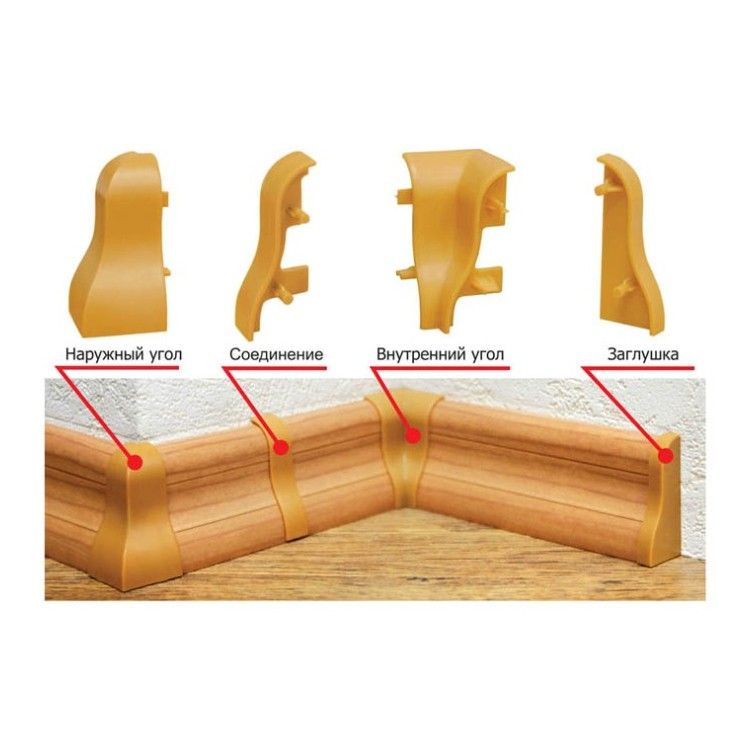 Продуманная конструкция позволяет легко и быстро осуществлять монтаж и демонтаж, а также повторную установку. Есть 4 варианта установки плинтуса: дюбелями, клейкой лентой, скобами, при помощи клея.